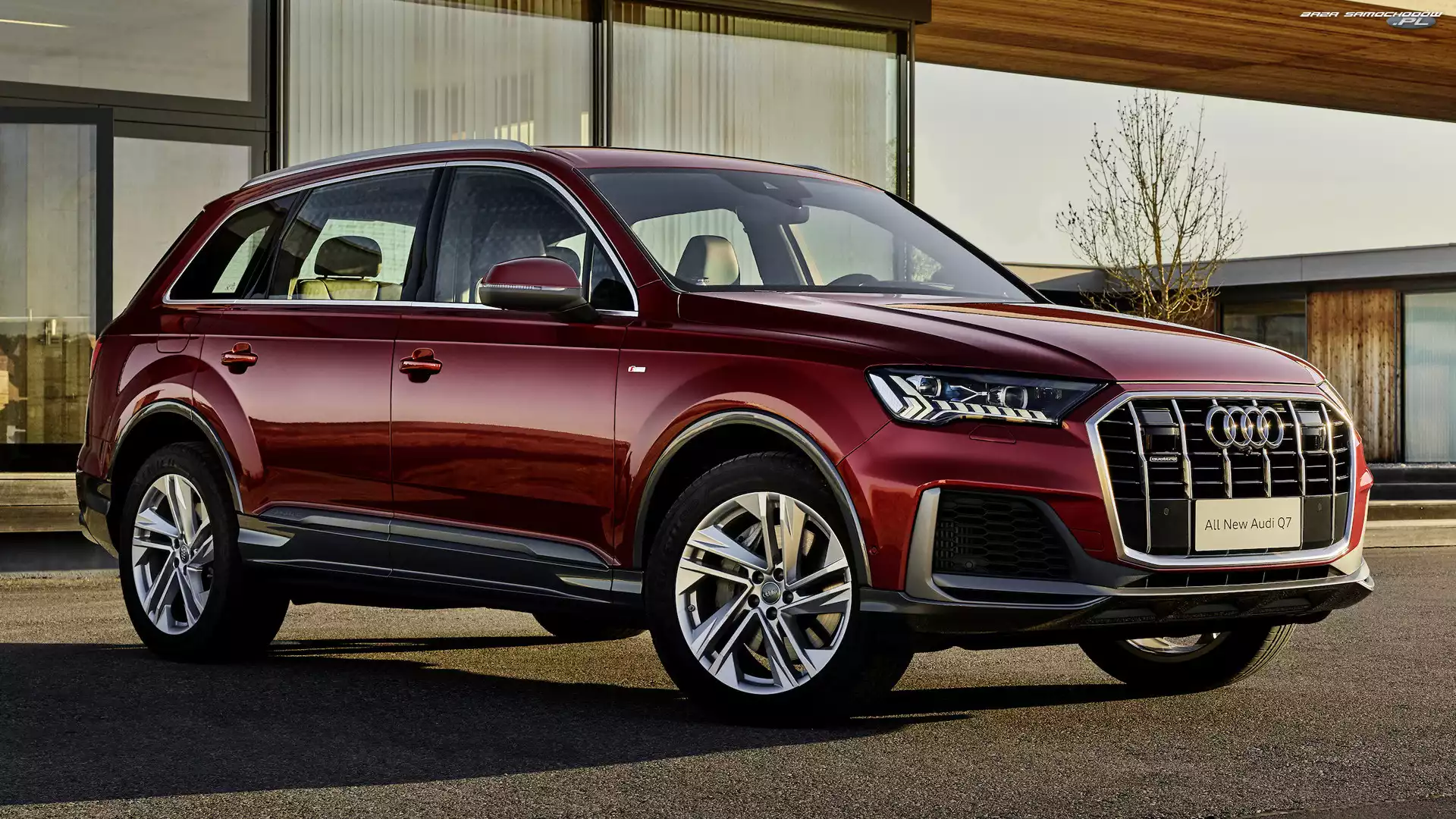 Tył, Czerwone, Audi Q7 ABT, Audi Q7, Pakiet Audi Q7 S Reklama, Audi Q7, Katalog Audi Q7 Audi Q7, Droga, Czerwone, Góry SUV, Audi Q7, Elegancki Czerwone, Audi Q7 Audi Q7 S, Czerwone Audi Q7 Lewy Profil, Audi Q7 Nawigacja, Audi Q7 Wykończenie, Audi Q7, Drewniane Białe, Audi Q7, Bok, Tył