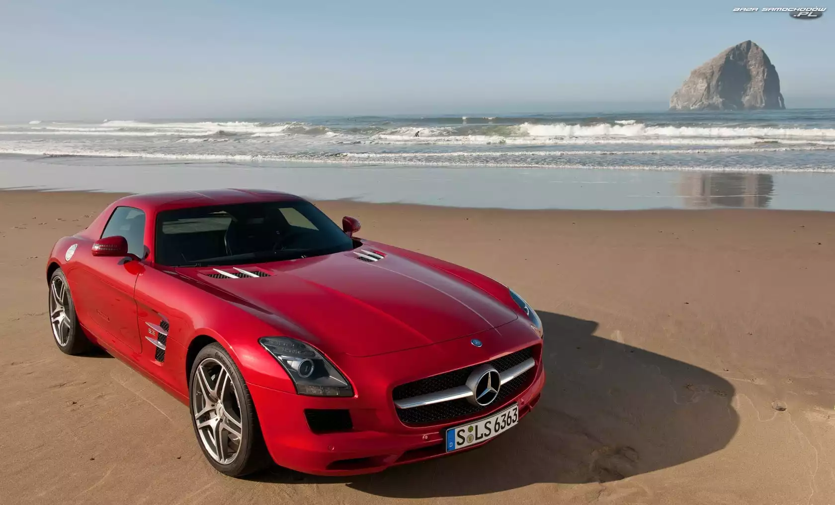 Samochód: Plaża, Czerwony, Mercedes SLS