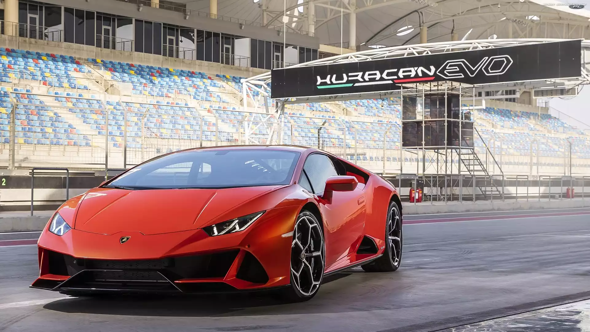 Stadion, Czerwone, Lamborghini Huracan EVO- Zdjęcia samochodów